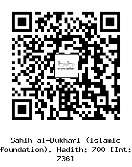 ৭০০। মুহাম্মদ ইবনু মুকাতিল (রহঃ) ... আবদুল্লাহ ইবনু উমর (রাঃ) থেকে বর্ণিত, তিনি বলেন, আমি রাসূল সাল্লাল্লাহু আলাইহি ওয়াসাল্লাম কে দেখেছি, তিনি যখন সালাত (নামায/নামাজ)-এর জন্য দাঁড়াতেন তখন উভয় হাত কাঁধ বরাবর উঠাতেন। এবং যখন তিনি রুকু’র জন্য তাকবীর বলতেন তখনও এরূপ করতেন। আবার যখন রুকু থেকে মাথা উঠাতেন তখনও এরূপ করতেন এবং سَمِعَ اللَّهُ لِمَنْ حَمِدَهُ বলতেন। তবে সিজদার সময় এরুপ করতেন না।