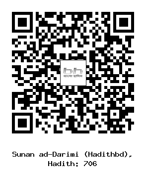 ৭০৬. আবু হুরাইরা রাদ্বিয়াল্লাহু্ আনহু হতে বর্ণিত, নবী সাল্লাল্লাহু আলাইহি ওয়া সাল্লাম বলেছেন: “আমি যদি আমার উম্মতের উপরে কঠিন মনে না করতাম তবে, আমি অবশ্যই তাদেরকে প্রত্যেক সালাতের সময় এর নির্দেশ দিতাম।”[1] আবু মুহাম্মদ বলেন: ’এর’ অর্থ ’মিসওয়াক করার’।