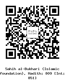 ৮০৯। মুহাম্মদ ইবনু উবাইদ (রহঃ) ... উকবা (রাঃ) থেকে বর্ণিত, তিনি বলেন, আমি মদিনায় নবী সাল্লাল্লাহু আলাইহি ওয়াসাল্লাম এর পিছনে আসরের সালাত (নামায/নামাজ) আদায় করলাম। সালাম ফিরানোর পর তিনি তাড়াতাড়ি দাঁড়িয়ে যান এবং মুসল্লিগণকে ডিঙ্গিয়ে তাঁর সহধর্মিণীগণের কোন একজনের কক্ষে গেলেন। তাঁর এই দ্রুততায় মুসল্লীগণ ঘাবড়িয়ে গেলেন। নবী সাল্লাল্লাহু আলাইহি ওয়াসাল্লাম তাঁদের কাছে ফিরে এলেন এবং দেখলেন যে, তাঁর দ্রুততার কারণে তাঁরা বিস্মিত হয়ে পড়েছেন। তাই তিনি বললেনঃ আমার কাছে রক্ষিত কিছু স্বর্ণের কথা মনে পড়ে যায়। তা আমার প্রতিবন্ধক হোক, তা আমি পছন্দ করি না। তাই তা বণ্টন করার নির্দেশ দিয়ে দিলাম।