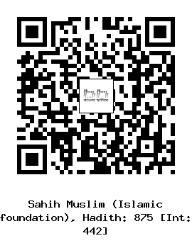 ৮৭৫। ইবন নুমায়র (রহঃ) ... ইবনু উমার (রাঃ) থেকে বর্ণিত। তিনি বলেন, আমি রাসূল সাল্লাল্লাহু আলাইহি ওয়াসাল্লাম কে বলতে শুনেছিঃ তোমাদের স্ত্রীগণ মসজিদে যেতে অনুমতি চাইলে তাদেরকে মসজিদে যেতে অনুমতি দিবে।
