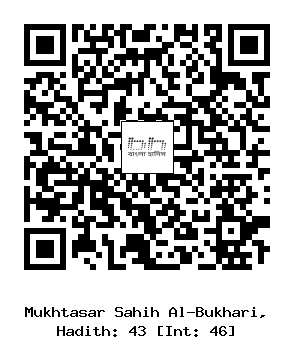 ৪৩) তালহা বিন উবাইদুল্লাহ (রাঃ) হতে বর্ণিত, তিনি বলেনঃ একদা নজদের অধিবাসী একজন লোক রাসূল সাল্লাল্লাহু আলাইহি ওয়া সাল্লাম-এর নিকট আগমণ করল। তার মাথার চুলগুলো ছিল এলোমেলো। আমরা তার কন্ঠস্বর শুনছিলাম। কিন্তু সে কি বলছে তা আমরা বুঝতে পারছিলামনা। সে একেবারে রাসূল সাল্লাল্লাহু আলাইহি ওয়া সাল্লামের নিকটে এসে বসল। বসেই সে নবী সাল্লাল্লাহু আলাইহি ওয়া সাল্লামকে ইসলাম সম্পর্কে প্রশ্ন করল। উত্তরে তিনি বললেনঃ ইসলাম হল প্রতিদিন পাঁচ ওয়াক্ত নামায আদায় করা। লোকটি বললঃ পাঁচ ওয়াক্ত নামায ব্যতীত আমার উপর আরো কোন নামায আছে কি? নবী সাল্লাল্লাহু আলাইহি ওয়া সাল্লাম বললেনঃ তোমার উপর আর কোন নামায নেই। তবে তুমি যদি নফল নামায পড়তে চাও তার কথা ভিন্ন। নবী সাল্লাল্লাহু আলাইহি ওয়া সাল্লাম আরো বললেনঃ রামাযান মাসের রোযা রাখা। সে বললঃ রামাযানের রোযা ব্যতীত আমার উপর আরো কোন রোযা আছে কি? নবী সাল্লাল্লাহু আলাইহি ওয়া সাল্লাম বললেনঃ তোমার উপর আর কোন রোযা নেই। তবে তুমি যদি নফল রোযা রাখতে চাও তাহলে রাখতে পার। তারপর নবী সাল্লাল্লাহু আলাইহি ওয়া সাল্লাম তাকে যাকাতের কথা বললেনঃ সে বললঃ ফরয যাকাত ব্যতীত আমার উপর আরো কোন যাকাত আছে কি? নবী সাল্লাল্লাহু আলাইহি ওয়া সাল্লাম বললেনঃ তোমার উপর আর কোন ফরয যাকাত নেই। তবে তুমি যদি অতিরিক্ত কিছু সম্পদ নফল হিসাবে সাদকাহ করতে চাও তার কথা ভিন্ন। হাদীছের বর্ণনাকারী বলেনঃ অতঃপর লোকটি এ কথা বলতে বলতে চলে গেল যে, আল্লাহর শপথ! আমি এর চেয়ে বেশীও করবোনা কমও করবোনা। তার কথা শুনে রাসূল সাল্লাল্লাহু আলাইহি ওয়া সাল্লাম বললেনঃ লোকটি যদি সত্য বলে থাকে তাহলে অবশ্যই সফলকাম হবে।