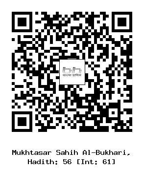 ৫৬) আব্দুল্লাহ ইবনে উমর (রাঃ) হতে বর্ণিত, তিনি বলেনঃ একদা রাসূল সাল্লাল্লাহু আলাইহি ওয়া সাল্লাম বললেনঃ এমন এক প্রকার বৃক্ষ রয়েছে যার পাতা ঝরে পড়েনা। আর উহা মু’মিনের অনুরূপ। আমাকে বল তো সেটি কোন্ বৃক্ষ? লোকেরা জঙ্গলের বৃক্ষ সম্পর্কে চিন্তা করতে থাকল। আব্দুল্লাহ ইবনে উমর (রাঃ) বলেনঃ আমার মনে জাগল যে, উহা হল খেজুর গাছ। কিন্তু আমি তা প্রকাশ করতে লজ্জা বোধ করলাম। সাহাবীগণ বললেনঃ হে আল্লাহর রাসূল! আপনি আমাদেরকে তা বলে দিন। তিনি বললেনঃ তা হল খেজুর বৃক্ষ।