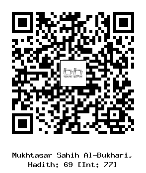 ৬৯) মাহমূদ বিন রাবী (রাঃ) হতে বর্ণিত, তিনি বলেনঃ রাসূল সাল্লাল্লাহু আলাইহি ওয়া সাল্লাম একবার বালতি থেকে মুখে পানি নিয়ে কুলি করে আমার চেহারায় তা নিক্ষেপ করলেন। তখন আমার বয়স ছিল পাঁচ বছর। ঘটনাটি এখনও আমার মনে রয়েছে।