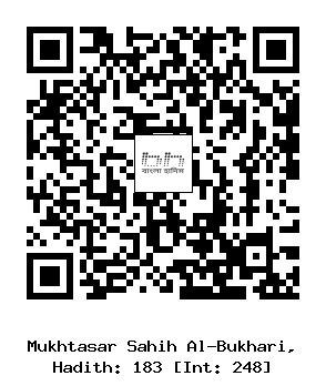১৮৩) আয়েশা (রাঃ) হতে বর্ণিত, তিনি বলেনঃ নবী সাল্লাল্লাহু আলাইহি ওয়া সাল্লাম যখন স্ত্রী সহবাসের গোসল করতেন তখন তিনি উভয় হাত কব্জি পর্যন্ত তিনবার ধৌত করে নিতেন। অতঃপর তিনি নামাযের ন্যায় অযু করতেন। অতঃপর পানিতে আঙ্গুল ডুবিয়ে মাথার চুলের গোড়া খিলাল করতেন। অতঃপর মাথায় তিনবার পানি ঢালতেন। অতঃপর সমস্ত শরীরে পানি ঢালতেন।