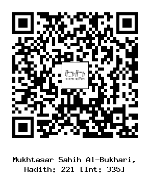 ২২১) জাবের বিন আব্দুল্লাহ্ (রাঃ) হতে বর্ণিত, নবী সাল্লাল্লাহু আলাইহি ওয়া সাল্লাম বলেনঃ আমাকে এমন পাঁচটি জিনিষ প্রদান করা হয়েছে, যা পূর্বের কোন নবীকে দেয়া হয়নি। (১) এক মাসের দূরত্ব থেকে (শত্রুদের মনে) আতঙ্ক ঢুকিয়ে দিয়ে আমাকে সাহায্য করা হয়েছে। (২) যমীনের মাটি আমার জন্য পবিত্র এবং মসজিদ স্বরূপ করা হয়েছে। অতএব আমার উম্মাতের কোন ব্যক্তির নিকট যদি নামাযের সময় উপস্থিত হয়, তবে সে যেন উহা আদায় করে নেয়। (৩) আমার জন্য গণীমতের মাল হালাল করা হয়েছে, যা আমার পূর্বে কারো জন্য হালাল করা হয়নি। (৪) আমাকে শাফাআতের অধিকার দেয়া হয়েছে। (৫) আমার পূর্বেকার নবীগণ প্রেরিত হতেন তাদের গোত্রের লোকদের নিকট। আর আমি প্রেরিত হয়েছি সমগ্র মানব জাতির জন্যে।