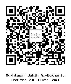 ২৪৬) আনাস বিন মালেক (রাঃ) হতে বর্ণিত, তাঁর দাদী মুলায়কা একদিন রাসূল সাল্লাল্লাহু আলাইহি ওয়া সাল্লামের জন্য খানা তৈরী করে তাঁকে দাওয়াত করলেন। নবী সাল্লাল্লাহু আলাইহি ওয়া সাল্লাম তা থেকে খেলেন। অতঃপর খাওয়া শেষে তিনি বললেনঃ দাঁড়াও! আমি তোমাদেরকে নিয়ে নামায পড়বো। আনাস (রাঃ) বলেনঃ আমি একটি পুরাতন চাটাই নিয়ে আসলাম, যা বেশী ব্যবহার করার কারণে কালো হয়ে গিয়েছিল। তাই আমি পানি দিয়ে তা ধৌত করলাম। তারপর রাসূল সাল্লাল্লাহু আলাইহি ওয়া সাল্লাম তাতে দাঁড়ালেন। আমি এবং একটি এতীম ছেলে তাঁর পেছনে দাঁড়ালাম। আর আমার বৃদ্ধা দাদী আমাদের পেছনে দাঁড়ালেন। অতঃপর নবী সাল্লাল্লাহু আলাইহি ওয়া সাল্লাম আমাদেরকে নিয়ে দু’রাকআত নামায পড়ে সে স্থান থেকে প্রস্থান করলেন।