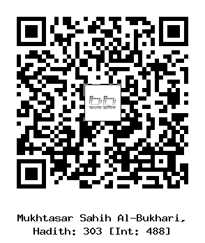 ৩০৩) আব্দুল্লাহ ইবনে উমার (রাঃ) হতে বর্ণিত, তিনি বলেনঃ নবী সাল্লাল্লাহু আলাইহি ওয়া সাল্লাম ঐ টিলার নিকটস্থ স্থানে (মসজিদে) নামায পড়েছেন, যার পাশেই রয়েছে পানির ঝর্ণা। আর এই স্থানটি তোমার হাযবা যাওয়ার পথে ‘আরজ’ নামক স্থানের পেছনে পড়বে। ঐ মসজিদের পাশে দু’টি বা তিনটি কবর রয়েছে। কবরগুলোর উপরে রয়েছে বড় বড় পাথর। আর তা রাস্তার ডান পার্শ্বে বৃক্ষসমূহের নিকটে অবস্থিত। দুপুরের পর সূর্য ঢলে পড়লে আব্দুল্লাহ ইবনে উমার ‘আরজ’ থেকে যাওয়ার পথে উক্ত গাছগুলোর মধ্য দিয়ে যেতেন এবং ঐখানে অবস্থিত মসজিদে যোহরের নামায আদায় করতেন।