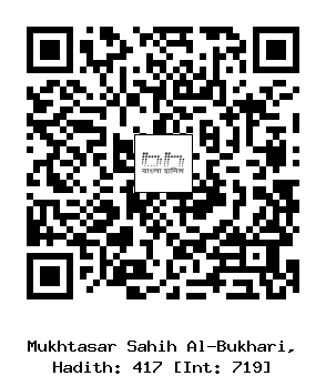 ৪১৭) আনাস (রাঃ) হতে বর্ণিত, একবার নবী সাল্লাল্লাহু আলাইহি ওয়া সাল্লাম আমাদের দিকে ফিরে বললেনঃ তোমরা তোমাদের কাতার সোজা কর এবং একজন অন্যজনের সাথে মিলিত হয়ে দাঁড়াও। কারণ আমি তোমাদেরকে আমার পিঠের পেছন থেকেও দেখতে পাই।