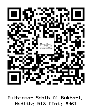৫১৮) আব্দুল্লাহ ইবনে উমার (রাঃ) হতে বর্ণিত, আহযাবের (খন্দকের) যুদ্ধ হতে ফেরত এসে রাসূল সাল্লাল্লাহু আলাইহি ওয়া সাল্লাম আমাদেরকে বলেনঃ বনী কুরায়যায় না গিয়ে কেউ যেন আসরের নামায না পড়ে। কোন কোন লোক রাস্তায় থাকতেই আসরের নামাযের সময় হয়ে গেল। কতিপয় লোক বললঃ সেখানে যাওয়ার পূর্বে আমরা নামায আদায় করবোনা। আবার কেউ বললঃ আমরা নামায পড়ে নিব। রাসূল সাল্লাল্লাহু আলাইহি ওয়া সাল্লামের উদ্দেশ্য এ ছিলনা যে, নামাযের সময় শেষ হয়ে গেলেও আমরা নামায থেকে বিরত থাকবো। নবী সাল্লাল্লাহু আলাইহি ওয়া সাল্লামের কাছে তারা যখন বিষয়টি নিয়ে আলোচনা করলেন তখন তিনি কাউকে দোষারোপ করেননি।