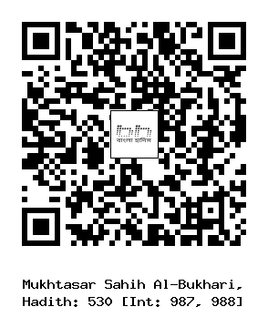 ৫৩০- قَالَتْ عَائِشَةُ: رَأَيْتُ النَّبِيَّ يَسْتُرُنِي وَأَنَا أَنْظُرُ إِلَى الْحَبَشَةِ، وَهُمْ يَلْعَبُونَ فِي الْمَسْجِدِ، فَزَجَرَهُمْ عُمَرُ، فَقَالَ النَّبِيُّ دَعْهُمْ، أَمْنًا بَنِي أَرْفِدَةَ