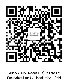 ২৪৪। আহমদ ইবনু সুলায়মান (রহঃ) ... আবূ সালামা ইবনু আবদুর রহমান (রহঃ) থেকে বর্ণিত। তিনি বলেনঃ আয়িশা (রাঃ) আমার নিকট বর্ণনা করেছেন যে, রাসুলুল্লাহ সাল্লাল্লাহু আলাইহি ওয়াসাল্লাম যখন জানাবাতের গোসল করতেন, তাঁর জন্য পানি রাখা হত, তখন তিনি তাঁর হাতদ্বয়কে পাত্রে ঢুকাবার পূর্বে তাঁর উপর পানি ঢেলে নিতেন। তারপর যখন উভয় হাত ধুয়ে নিতেন তখন তিনি নিজ ডান হাত পাত্রে ঢুকাতেন। তারপর ডান হাত ধৌত করতেন আর বাম হাতে তাঁর লজ্জাস্থান ধৌত করতেন। এ কাজ শেষ করার পর তিনি ডান হাতে বাম হাতের উপর পানি ঢালতেন। এভাবে উভয় হাত ধুয়ে ফেলতেন। তারপর তিনি তিন বার কুলি করতেন এবং নাকে পানি দিতেন। তারপর উভয় হাতের তালুভরে মাথায় তিনবার পানি ঢালতেন। তারপর দেহে পানি ঢালতেন।
