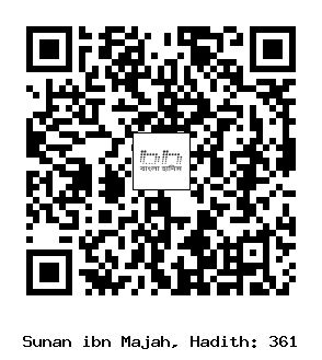 ২/৩৬১। আয়িশাহ (রাঃ) থেকে বর্ণিত। তিনি বলেন, আমি রাতের বেলা রাসূলুল্লাহ সাল্লাল্লাহু আলাইহি ওয়াসাল্লাম এর জন্য তিনটি পানির পাত্র মুখ বন্ধ করে রেখে দিতামঃ একটি তাঁর উযূ (ওজু/অজু/অযু)র জন্য, একটি তাঁর মিসওয়াকের জন্য এবং একটি তাঁর পান করার জন্য।