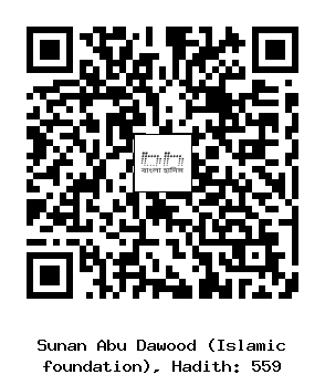 ৫৫৯. মূসা’দ্দাদ .... আবূ হুরায়রা (রাঃ) হতে বর্ণিত। তিনি বলেন, রাসূলুল্লাহ্ সাল্লাল্লাহু আলাইহি ওয়া সাল্লাম ইরশাদ করেছেন, কোন ব্যক্তি জামাআতের সাথে নামায আদায় করলে বাড়ীতে এবং বাজারে একাকী নামায আদায় করা অপেক্ষা তা পঁচিশ গুণ শ্রেয়। তা এই কারনে যে, যখন কোন ব্যক্তি উত্তমরূপে উযূ (ওজু/অজু/অযু) করে শুধু নামাযের উদ্দেশ্যেই মসজিদে যায় তার প্রতি পদক্ষেপের বিনিময়ে তার মর্যাদা বৃদ্ধি এবং গুনাহ্ মাফ হয়ে থাকে যতক্ষণ না সে মসজিদে প্রবেশ করে। অতঃপর সে ব্যক্তি মসজিদে প্রবেশের পর যতক্ষণ সেখানে নামাযের জন্য অবস্থান করবে ততক্ষণ তাকে নামাযী হিসাবে গণ্য করা হবে। ঐ ব্যক্তি যতক্ষণ মসজিদে অবস্থান করবে ততক্ষণ ফেরেশতারা তার জন্য দু’আ করবে। দু’আটি এইরূপঃ “ইয়া আল্লাহ্! তুমি তাকে ক্ষমা করা ইয়া আল্লাহ্! তুমি তার উপর রহমত বর্ষণ কর। ইয়া আল্লাহ্! তুমি তার তওবা কবুল করা।”