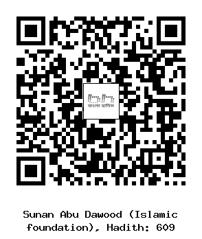 ৬০৯. হাফস ইবনু উমার .... আনাস (রাঃ) হতে বর্ণিত। তিনি বলেন, একদা রাসূলুল্লাহ সাল্লাল্লাহু আলাইহি ওয়া সাল্লাম তাঁর ও একজন মহিলার ইমামতি করেন। তিনি তাকে তাঁর পাশে এবং ঐ মহিলাকে আনাসের পেছনে দাঁড় করান। (মুসলিম, নাসাঈ, ইবনু মাজাহ)।