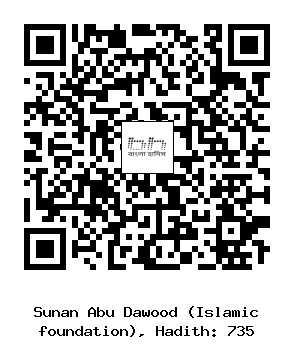 ৭৩৫. আমর ইবনু উছমান ...... আবূ হুমায়েদ (রাঃ) হতে পূর্ববর্তী হাদীছের অনুরূপ বর্ণিত হয়েছে। তিনি বলেন, যখন তিনি সিজদা করতেন, তখন স্বীয় পেট রান হতে বিচ্ছিন্ন রাখতেন।