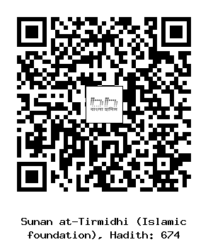 ৬৭৪. মুসলিম ইবনু আমর ইবনু মুসলিম, আবূ আমর হায্যা আল-মাদানী (রহঃ) ..... ইবনু উমার (রাঃ) থেকে বর্ণিত যে, রাসূলুল্লাহ সাল্লাল্লাহু আলাইহি ওয়াসাল্লাম ঈদুল ফিতরের দিন সালাতের উদ্দেশ্যে অতি ভোরে রওনা হওয়ার আগেই (যাকাত-ফিতরা) আদায় করে দিতে নির্দেশ দিতেন। - সহিহ সাবু দাউদ ১৪২৮, ইরওয়া ৮৩২, বুখারি ও মুসলিম, তিরমিজী হাদিস নম্বরঃ ৬৭৭ [আল মাদানী প্রকাশনী]