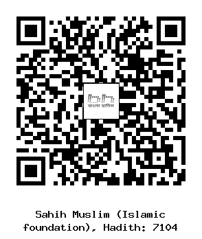৭১০৪। আলী ইবনু হুজর সা’দী ও ইসহাক ইবনু ইবরাহীম (রহঃ) ... রিবঈ ইবনু হিরাশ (রহঃ) থেকে বর্ণিত। তিনি বলেন, একদা হুযায়ফা ও আবূ মাসউদ (রাঃ) একত্রিত হলেন। তখন হুযায়ফা (রাঃ) বললেন, দাজ্জালের সাথে যা থাকবে এ সম্পর্কে আমি তার থেকে অধিক জ্ঞাত। তার সাথে একটি পানির নহর এবং একটি আগুনের নহর থাকবে। যেটাকে তোমরা আগুন রূপে দেখতে পাবে সেটাই (হবে) পানি। আর যেটাকে তোমরা পানি (রূপে) দেখবে সেটাই হবে আগুন। তোমাদের কেউ যদি এ সময়কাল পায় এবং সে পানি পান করার ইচ্ছা করে তবে সে যেন যা সে আগুন রূপে দেখতে পাবে তা থেকে পান করে। কেননা এখানেই সে পানি পাবে। বর্ণনাকারী আবূ মাসউদ (রাঃ) বলেন, আমিও নবী সাল্লাল্লাহু আলাইহি ওয়াসাল্লাম কে এরূপ বলতে শুনেছি।