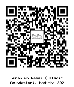 ৮৯২। সুওয়ায়দ ইবনু নাসর (রহঃ) ... ওয়ায়িল ইবনু হুজর (রাঃ) থেকে বর্ণিত। তিনি বলেন, আমি বললাম, আমি নিশ্চয়ই লক্ষ্য করব রাসুলুল্লাহ সাল্লাল্লাহু আলাইহি ওয়াসাল্লাম এর সালাতের প্রতি, তিনি কিরূপে সালাত আদায় করেন। আমি তার দিকে তাকালাম। তিনি দাঁড়িয়ে তাকবীর বললেন এবং তার হস্তদ্বয় উত্তোলন করলেন। আর হস্তদ্বয় কর্ণদ্বয়ের বরাবর হল। তারপর তিনি তার ডান হাত রাখলেন বাম হাতের উপর অর্থাৎ এক কব্জি অন্য কব্জির ওপর কিংবা এক হাত অন্য হাতের উপর রাখলেন। যখন তিনি রুকু করার ইচ্ছা করলেন হস্তদ্বয় পূর্বের মত উঠালেন। রাবী বলেন, তিনি হস্তদ্বয় স্থাপন করলেন তাঁর দু’হাঁটুর উপর। এরপর যখন তিনি রুকু থেকে মাথা উঠালেন তখন তদ্রুপ হাত উঠালেন।