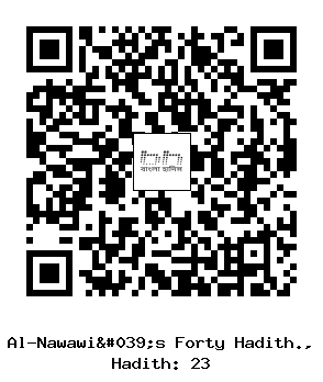 ২৩। আবূ মালেক আল-হারেস ইবনু আসেম আল-আশ’আরী রাদিয়াল্লাহু ’আনহু হতে বর্ণিত হয়েছে- রাসূলুল্লাহ্ (সাল্লাল্লাহু ’আলাইহি ওয়াসাল্লাম) বলেছেন: