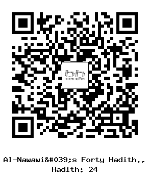 ২৪। আবূ যর আল-গিফারী রাদিয়াল্লাহু ’আনহু হতে বর্ণিত হয়েছে, তিনি বর্ণনা করেছেন, নবী সাল্লাল্লাহু ’আলাইহি ওয়াসাল্লাম তাঁর বরকতময় ও সুমহান রবের নিকট হতে বর্ণনা করেন যে, আল্লাহ্ বলেছেন: