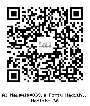 ৩৬। আবূ হুরায়রা রাদিয়াল্লাহু ’আনহু হতে বর্ণিত হয়েছে- নবী সাল্লাল্লাহু ’আলাইহি ওয়াসাল্লাম বলেছেন: যে ব্যক্তি দুনিয়াতে কোন মুমিনের দুঃখ দূর করে দেয়, আল্লাহ্ কেয়ামতের দিন তার দুঃখ দূর করে দিবেন। যে ব্যক্তি কোন বিপদগ্রস্ত ব্যক্তির বিপদ দূর করে দেয়, আল্লাহ্ দুনিয়াতে ও আখেরাতে তার বিপদ দূর করে দিবেন। যে ব্যক্তি কোন মুসলিমের দোষ-ত্রুটি গোপন রাখবে, আল্লাহ্ দুনিয়া ও আখেরাতে তার দোষ-ত্রুটি গোপন রাখবেন। যে বান্দা আপন ভাইকে সাহায্য করবে, আল্লাহ্ সে বান্দাকে সাহায্য করবেন। যে ব্যক্তি জ্ঞান লাভের জন্য কোন রাস্তা গ্রহণ করে, তার অসীলায় আল্লাহ্ তার জন্য জান্নাতের রাস্তা সহজ করে দিবেন। যেসব লোক আল্লাহর ঘরসমূহের মধ্যে কোন ঘরে (অর্থাৎ মসজিদে) সমবেত হবে, কুরআন পড়বে, সকলে মিলিত হয়ে তার শিক্ষা নেবে ও দেবে, তাদের উপর অবশ্যই প্রশান্তি অবতীর্ণ হবে, রহমত তাদের ঢেকে নেবে, ফিরিশ্তাগণ তাদের ঘিরে থাকবে আর আল্লাহ্ তাদের কথা এমন সকলের মধ্যে উল্লেখ করবেন যারা তাঁর কাছে উপস্থিত। যে ব্যক্তি তার আমলের কারণে পিছিয়ে পড়বে, তার বংশ পরিচয় তাকে এগিয়ে নিয়ে যেতে পারবে না।
