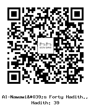 ৩৯। ইবনু আব্বাস রাদিয়াল্লাহু ’আনহু হতে বর্ণিত হয়েছে- রাসূল সাল্লাল্লাহু ’আলাইহি ওয়াসাল্লাম বলেছেন: আমার উদ্দেশ্যে আল্লাহ্ আমার উম্মাতের অনিচ্ছাকৃত ত্রুটি ও ভুল ক্ষমা করে দিয়েছেন এবং তার সে কাজ যা সে করতে বাধ্য হয়েছে।