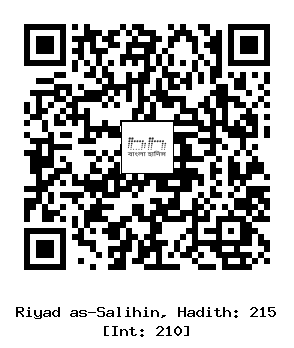 ৮/২১৫। আবূ হুরাইরাহ রাদিয়াল্লাহু ’আনহু থেকে বর্ণিত, নবী সাল্লাল্লাহু আলাইহি ওয়াসাল্লাম বলেছেন, ’’যে ব্যক্তি তার (কোন মুসলিম) ভাইয়ের উপর তার সম্ভ্রম অথবা কোন বিষয়ে যুলুম করেছে, সে যেন আজই (দুনিয়াতে) তার কাছে (ক্ষমা চেয়ে) হালাল করে নেয়, ঐ দিন আসার পূর্বে যেদিন দ্বীনার ও দিরহাম কিছুই থাকবে না। তার যদি কোন নেক আমল থাকে, তবে তার যুলুমের পরিমাণ অনুযায়ী তা হতে নিয়ে নেওয়া হবে। আর যদি তার নেকী না থেকে, তবে তার (মযলূম) সঙ্গীর পাপরাশি নিয়ে তার (যালেমের) উপর চাপিয়ে দেওয়া হবে।’’[1]