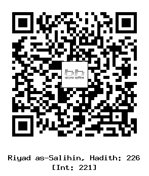 ১৯/২২৬। হামযাহ রাদিয়াল্লাহু ’আনহু-এর স্ত্রী খাওলাহ বিনতে আমের আনসারী রাদিয়াল্লাহু ‘আনহুমা বলেন, আমি রাসূলুল্লাহ সাল্লাল্লাহু আলাইহি ওয়াসাল্লাম কে বলতে শুনেছি, ’’কিছু লোক আল্লাহর মাল নাহক ব্যয়-বণ্টন করবে। সুতরাং তাদের জন্য কিয়ামতের দিন জাহান্নামের আগুন রয়েছে।’’[1]
