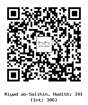 ১/৩৯১। আবূ হুরাইরাহ রাদিয়াল্লাহু ’আনহু কর্তৃক বর্ণিত, রাসূলুল্লাহ সাল্লাল্লাহু আলাইহি ওয়াসাল্লাম বলেছেন, নিশ্চয় আল্লাহ তা’আলা বলেন, ’’যে ব্যক্তি আমার কোনো বন্ধুর সাথে শত্রুতা করবে, তার বিরুদ্ধে আমার যুদ্ধের ঘোষণা রইল। আমার বান্দা যে সমস্ত জিনিস দ্বারা আমার নৈকট্য লাভ করে, তার মধ্যে আমার নিকট প্রিয়তম জিনিস হল তা, যা আমি তার উপর ফরয করেছি। (অর্থাৎ ফরযের দ্বারা আমার নৈকট্য লাভ করা আমার নিকটে বেশী পছন্দনীয়।) আর আমার বান্দা নফল ইবাদতের মাধ্যমে আমার নৈকট্য লাভ করতে থাকে, পরিশেষে আমি তাকে ভালবাসতে শুরু করি।