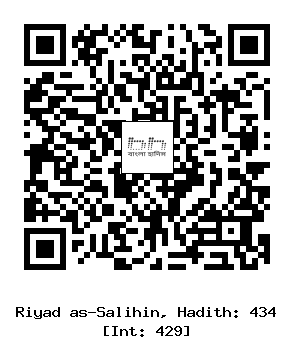 ১৮/৪৩৪। জাবের রাদিয়াল্লাহু ’আনহু থেকে বর্ণিত, রাসূলুল্লাহ সাল্লাল্লাহু আলাইহি ওয়াসাল্লাম বলেছেন, ’’পাঁচ ওয়াক্তের নামাযের উদাহরণ প্রচুর পানিতে পরিপূর্ণ ঐ নদীর মত, যা তোমাদের কারো দুয়ারের (সামনে বয়ে) প্রবাহিত হয়, যাতে সে দৈনিক পাঁচবার গোসল করে।’’ (মুসলিম) [1]