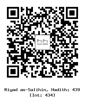 ২৩/৪৩৯। ইবনে মাসঊদ রাদিয়াল্লাহু ’আনহু কর্তৃক বর্ণিত, তিনি বলেন, এক ব্যক্তি এক মহিলাকে চুমা দিয়ে ফেলে। পরে সে নবী সাল্লাল্লাহু আলাইহি ওয়াসাল্লাম এর নিকট এসে বিষয়টি জানায়। তখন আল্লাহ তা’আলা এই আয়াত অবতীর্ণ করেন, ’’দিনের দু’প্রান্তে সকাল ও সন্ধ্যায় এবং রাতের প্রথম ভাগে নামায কায়েম কর। নিশ্চয়ই পুণ্যরাশি পাপরাশিকে মিটিয়ে দেয়।’’ (সূরা হূদ ১১৪) লোকটি জিজ্ঞেস করল, ’হে আল্লাহর রাসূল! এ কি শুধু আমার জন্য?’ তিনি বললেন, ’’না, এ আমার সকল উম্মতের জন্য।’’ (বুখারী ও মুসলিম) [1]