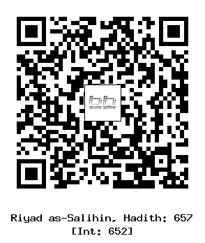 ৪/৬৫৭। আনাস রাদিয়াল্লাহু ’আনহু থেকে বর্ণিত, নবী সাল্লাল্লাহু আলাইহি ওয়াসাল্লাম কিবলার (দিকের দেওয়ালে) থুতু দেখতে পেলেন এটা তাঁর প্রতি খুব ভারী মনে হল; এমনকি তাঁর চেহারায় সে চিহ্ন দেখা গেল। ফলে দাঁড়ালেন এবং তিনি তা নিজ হাত দ্বারা ঘষে তুলে ফেললেন। তারপর বললেন, ’’তোমাদের কেউ যখন নামাযে দাঁড়ায়, তখন সে তার প্রতিপালকের সাথে কানে কানে (ফিসফিস করে কথা) বলে। আর তার প্রতিপালক তার ও কেবলার মধ্যস্থলে থাকেন। সুতরাং তোমাদের কেউ যেন কেবলার দিকে থুতু না ফেলে; বরং তার বামে অথবা পদতলে ফেলে। অতঃপর তিনি তাঁর চাদরের এক প্রান্ত ধরে তাতে থুতু নিক্ষেপ করলেন। তারপর তিনি তার এক অংশকে আর এক অংশের সাথে রগড়ে দিয়ে বললেন, কিংবা এইরূপ করে।’’ (বুখারী-মুসলিম) [1]