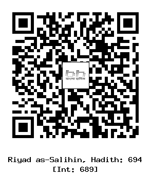 ১/৬৯৪। আবূ হুরাইরা রাদিয়াল্লাহু ’আনহু হতে বর্ণিত, রাসূলুল্লাহ সাল্লাল্লাহু আলাইহি ওয়াসাল্লাম বলেছেন, ’’মুনাফিকের চিহ্ন হল তিনটি (১) কথা বললে মিথ্যা বলে। (২) ওয়াদা করলে তা খেলাপ করে। এবং (৩) আমানত রাখা হলে তাতে খিয়ানত করে।’’ (বুখারী ও মুসলিম) [1]