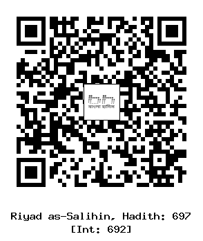 ১/৬৯৭। ’আব্দুল্লাহ ইবনে ’আমর ইবনুল ’আস রাদিয়াল্লাহু ’আনহু বলেন, আল্লাহর রাসূল সাল্লাল্লাহু আলাইহি ওয়াসাল্লাম একদা আমাকে বললেন, ’’হে আব্দুল্লাহ! তুমি অমুকের মত হয়ো না, যে রাত্রে উঠে ইবাদত করত, অতঃপর সে রাতের (তাহাজ্জুদ) নামায ছেড়ে দিয়েছে।’’ (বুখারী ও মুসলিম) [1]