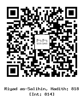 ১/৮১৮। বারা’ ইবনে ’আযেব রাদিয়াল্লাহু ’আনহু হতে বর্ণিত, তিনি বলেন, রাসূলুল্লাহ সাল্লাল্লাহু আলাইহি ওয়াসাল্লাম যখন শয্যাগ্রহণ করতেন, তখন ডান পার্শ্বে শয়ন করতেন এবং এই দো’আ পড়তেনঃ-