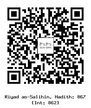 ১/ ৮৬৭। আনাস রাদিয়াল্লাহু ’আনহু হতে বর্ণিত, তিনি কতিপয় শিশুর নিকট দিয়ে অতিক্রম করার সময় তাদেরকে সালাম দিলেন এবং বললেন, ’রাসূলুল্লাহ সাল্লাল্লাহু আলাইহি ওয়াসাল্লাম এরূপ করতেন।’ (বুখারী ও মুসলিম) [1]