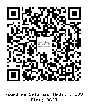 ১/৯৬৯। আবূ হুরাইরা রাদিয়াল্লাহু ’আনহু বলেন, রাসূলুল্লাহ সাল্লাল্লাহু আলাইহি ওয়াসাল্লাম বলেছেন, ’’যখন তোমরা সবুজ-শ্যামল ঘাসে ভরা যমীনে সফর করবে, তখন উটকে তার যমীনের অংশ দাও (অর্থাৎ কিছুক্ষণ চরতে দাও)। আর যখন তোমরা ঘাস-পানিবিহীন যমীনে সফর করবে, তখন তার উপর চড়ে দ্রুত চলো এবং তার শক্তি শেষ হওয়ার পূর্বেই গন্তব্যস্থানে পৌঁছে যাও। আর যখন তোমরা রাতে বিশ্রামের জন্য কোন স্থানে অবতরণ করবে, তখন আম রাস্তা থেকে দূরে থাকো। কারণ, তা রাতে (হিংস্র) জন্তুদের রাস্তা এবং (বিষাক্ত) পোকামাকড়ের আশ্রয় স্থল।’’ (মুসলিম) [1]