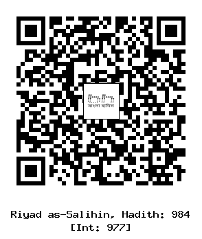 ৩/৯৮৪। উক্ত রাবী (ইবন উমার) রাদিয়াল্লাহু ’আনহু থেকেই বর্ণিত, তিনি বলেন, নবী সাল্লাল্লাহু আলাইহি ওয়াসাল্লাম যখন হজ্জ কিংবা উমরাহ সেরে ফিরে আসতেন, যখনই কোন পাহাড়ী উঁচু জায়গায় অথবা ঢিবিতে চড়তেন তখনই তিনবার ’আল্লাহু আকবার’ বলতেন। অতঃপর তিনি বলতেন, ’লা ইলাহা ইল্লাল্লাহু অহদাহু লা শারীকা লাহ, লাহুল মুল্কু অলাহুল হামদু অহুওয়া আলা কুল্লি শাইয়িন ক্বাদীর। আ-ইয়বূনা তা-ইবূনা সা-জিদূনা লিরাবিবনা হা-মিদূন। সাদাক্বাল্লাহু ওয়া’দাহ, অনাসারা আব্দাহ্, অহাযামাল আহযাবা অহদাহ।’