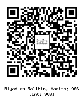 ১/৯৯৬। আবূ হুরাইরা রাদিয়াল্লাহু ’আনহু হতে বর্ণিত, তিনি বলেন, রাসূলুল্লাহ সাল্লাল্লাহু আলাইহি ওয়াসাল্লাম বলেছেন, ’’আল্লাহ ও শেষ দিবসের প্রতি যে নারী ঈমান রাখে, তার মাহরামের সঙ্গ ছাড়া একাকিনী এক দিন এক রাতের দূরত্ব সফর করা বৈধ নয়।’’ (বুখারী ও মুসলিম) [1]