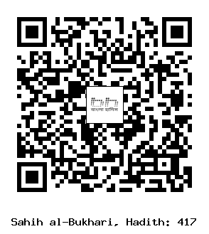 ৪১৭. আনাস ইবনু মালিক (রাযি.) হতে বর্ণিত যে, নবী সাল্লাল্লাহু আলাইহি ওয়াসাল্লাম ক্বিবলা (কিবলা/কেবলা)হর দিকে (দেয়ালে) কফ দেখে তা নিজ হাতে মুছে ফেললেন আর তাঁর চেহারায় অসন্তোষ প্রকাশ পেল। বা সে কারণে তাঁর চেহারায় অসন্তোষ প্রকাশ পেলো এবং এর প্রতি তাঁর ক্ষোভ প্রকাশ পেল। তিনি বললেনঃ যখন তোমাদের কেউ সালাতে দাঁড়ায়, তখন সে তার প্রতিপালকের সাথে চুপে চুপে কথা বলে। অথবা (বলেছেন) তখন তার প্রতিপালক, ক্বিবলা (কিবলা/কেবলা)হ ও তার মাঝখানে থাকেন। কাজেই সে যেন ক্বিবলা (কিবলা/কেবলা)হর দিকে থুথু না ফেলে, বরং (প্রয়োজনে) তার বাম দিকে বা পায়ের নীচে ফেলবে। অতঃপর তিনি চাদরের কোণ ধরে তাতে থুথু ফেলে এক অংশের উপর অপর অংশ ভাঁজ করে দিলেন এবং বললেনঃ অথবা এমন করবে। (২৪১) (আধুনিক প্রকাশনীঃ ৪০০, ইসলামিক ফাউন্ডেশনঃ ৪০৬)