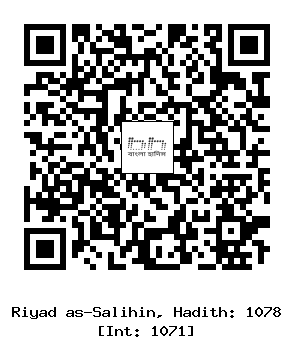 ১/১০৭৮। উসমান ইবনে আফ্ফান রাদিয়াল্লাহু আনহু হতে বর্ণিত, তিনি বলেন, আমি রাসূলুল্লাহ সাল্লাল্লাহু আলাইহি ওয়াসাল্লাম-কে বলতে শুনেছি, “যে ব্যক্তি জামাতের সাথে এশার নামায আদায় করল, সে যেন অর্ধেক রাত পর্যন্ত কিয়াম (ইবাদত) করল। আর যে ফজরের নামায জামাতসহ আদায় করল, সে যেন সারা রাত নামায পড়ল।” (মুসলিম) [1]