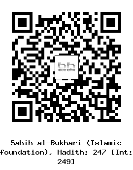 ২৪৭। মুহাম্মদ ইবনু ইউসুফ (রহঃ) ..... মায়মুনা (রাঃ) থেকে বর্ণিত, তিনি বলেনঃ রাসূলুল্লাহ সাল্লাল্লাহু আলাইহি ওয়াসাল্লাম সালাতের উযূর ন্যায় উযূ (ওজু/অজু/অযু) করলেন, অবশ্য পা দুটো ছাড়া এবং তাঁর লজ্জাস্থান ও যে যে স্থানে নাপাক লেগেছে তা ধুয়ে নিলেন। তারপর নিজের উপর পানি ঢেলে দেন। তারপর সেখান থেকে সরে গিয়ে পা দুটো ধুয়ে নেন। এই ছিল তাঁর জানবাতের গোসল।