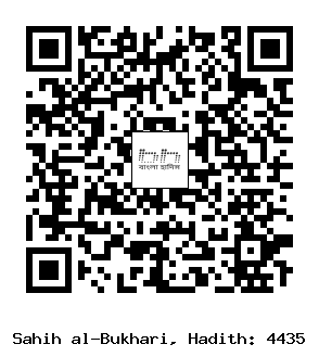 ৪৪৩৫. ‘আয়িশাহ (রাঃ) হতে বর্ণিত। তিনি বলেন, আমি এ কথা শুনেছিলাম যে, কোন নবী মারা যান না যতক্ষণ না তাঁকে বলা হয় দুনিয়া বা আখিরাতের একটি বেছে নিতে। যে রোগে নবী সাল্লাল্লাহু ‘আলাইহি ওয়াসাল্লাম ইন্তিকাল করেন সে রোগে আমি নবী সাল্লাল্লাহু ‘আলাইহি ওয়াসাল্লাম-কে যন্ত্রণায় কাতর অবস্থায় বলতে শুনেছি, তাঁদের সঙ্গে যাঁদের প্রতি আল্লাহ তা‘আলা নি‘য়ামাত প্রদান করেছেন- [তাঁরা হলেন- নবী (আঃ)-গণ, সিদ্দীকগণ এবং শাহীদগণ] (সূরাহ আন-নিসা ৪/৬৯)। তখন আমি ধারণা করলাম যে, তাঁকেও একটি বেছে নিতে বলা হয়েছে। [৪৪৩৬, ৪৪৩৭, ৪৪৬৩, ৪৫৮৬, ৬৩৪৮, ৬৫০৯; মুসলিম ৪৪/১৩, হাঃ ২৪৪৪, আহমাদ ২৬৪৭৯] (আধুনিক প্রকাশনীঃ ৪০৮৫, ইসলামিক ফাউন্ডেশনঃ ৪০৮৮)