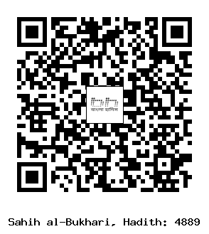 ৪৮৮৯. আবূ হুরাইরাহ (রাঃ) হতে বর্ণিত। তিনি বলেন, এক ব্যক্তি রাসূল সাল্লাল্লাহু ’আলাইহি ওয়াসাল্লাম-এর কাছে এসে বলল, আমি খুব ক্ষুধার্ত। তখন তিনি তাঁর সহধর্মিণীদের নিকট পাঠালেন; কিন্তু তিনি তাদের কাছে কিছুই পেলেন না। এরপর রাসূল সাল্লাল্লাহু ’আলাইহি ওয়াসাল্লাম বললেন, এমন কেউ আছে কি, যে আজ রাতে এ লোকটিকে মেহমানদারী করতে পারে? আল্লাহ্ তাঁর প্রতি রহমত করবেন। তখন আনসারদের এক ব্যক্তি দাঁড়িয়ে বললেন, আমি আছি, হে আল্লাহর রাসূল! এরপর তিনি তাঁকে সঙ্গে নিয়ে বাড়িতে গেলেন এবং নিজ স্ত্রীকে বললেন, ইনি রাসূল সাল্লাল্লাহু ’আলাইহি ওয়াসাল্লাম-এর মেহমান। কোন জিনিস জমা করে রাখবে না। মহিলা বলল, আল্লাহর কসম! আমার কাছে ছেলে-মেয়েদের খাবার ছাড়া আর কিছুই নেই। তিনি বললেন, ছেলেমেয়েরা রাতের খাবার চাইলে তুমি তাদেরকে ঘুম পাড়িয়ে দিও, (খাবার নিয়ে) আমার কাছে আসিও, অতঃপর বাতিটি নিভিয়ে দিও। আজ রাতে আমরা ভুখা থাকব। সুতরাং মহিলা তা-ই করল। পরদিন সকালে আনসারী সাহাবী রাসূল সাল্লাল্লাহু ’আলাইহি ওয়াসাল্লাম-এর খিদমাতে আসলেন। তিনি বললেন, অমুক ব্যক্তি ও তার স্ত্রীর প্রতি আল্লাহ্ সন্তুষ্ট হয়েছেন অথবা অমুক অমুকের কাজে আল্লাহ্ হেসেছেন। এরপর আল্লাহ্ অবতীর্ণ করলেনঃ ’’এবং তাঁরা তাদের নিজেদের উপর অন্যদের প্রাধান্য দেয় নিজেরা অভাবগ্রস্ত হওয়া সত্ত্বেও।’’ [৩৭৯৮] (আধুনিক প্রকাশনীঃ ৪৫২১, ইসলামিক ফাউন্ডেশনঃ ৪৫২৪)