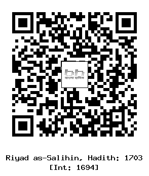 ২/১৭০৩। আয়েশা রাদিয়াল্লাহু আনহা হতে বর্ণিত, একদা আল্লাহর রাসূল সাল্লাল্লাহু আলাইহি ওয়াসাল্লাম কিবলার দিকের দেওয়ালে পোঁটা, থুথু কিম্বা শ্লেষ্মা দেখতে পেলেন। সুতরাং তিনি রগড়ে পরিষ্কার করে দিলেন। (বুখারী ও মুসলিম) [1]