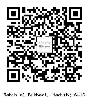 ৬৪১৬. ’আবদুল্লাহ্ ইবনু ’উমার (রাঃ) হতে বর্ণিত। তিনি বলেন, রাসূলুল্লাহ্ সাল্লাল্লাহু আলাইহি ওয়াসাল্লাম একবার আমার দু’ কাঁধ ধরে বললেনঃ তুমি দুনিয়াতে থাক যেন তুমি একজন প্রবাসী অথবা পথচারী।