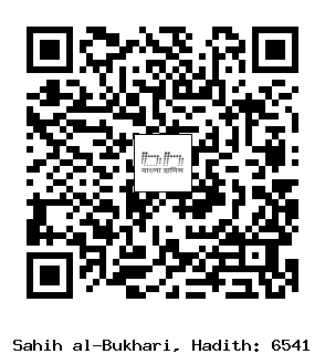৬৫৪১. ইবনু ’আব্বাস (রাঃ) হতে বর্ণিত। তিনি বলেন, নবী সাল্লাল্লাহু আলাইহি ওয়াসাল্লাম বলেছেনঃ আগের উম্মাতদের আমার সামনে পেশ করা হয়। কোন নবী তাঁর বহু উম্মাতকে সঙ্গে নিয়ে যাচ্ছেন। কোন নবীর সঙ্গে অপেক্ষাকৃত ছোট দল। কোন নবীর সঙ্গে আছে দশজন উম্মাত। কোন নবীর সাথে আছে পাঁচজন আবার কোন নবী একা একা যাচ্ছেন। দৃষ্টি দিতেই, হঠাৎ দেখি অনেক বড় একটি দল। জিজ্ঞেস করলামঃ হে জিব্রীল! ওরা কি আমার উম্মাত? তিনি বললেন, না। তবে আপনি শেষ প্রান্তের দিকে তাকিয়ে দেখুন! আমি দৃষ্টি দিলামঃ হঠাৎ দেখি অনেক বড় একটি দল। তিনি বললেন, ওরা আপনার উম্মাত। আর তাদের অগ্রবর্তী সত্তর হাজার লোকের কোন হিসাব হবে না, তাদের কোন আযাব হবে না।