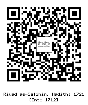 ১/১৭২১। ইবনে মাসঊদ রাদিয়াল্লাহু আনহু কর্তৃক বর্ণিত, নবী সাল্লাল্লাহু আলাইহি ওয়াসাল্লাম বলেছেন, ’’যে ব্যক্তি কোন মুসলিম ব্যক্তির মাল নাহক আত্মসাৎ করার জন্য মিথ্যা কসম খাবে, সে আল্লাহর সাথে এমন অবস্থায় সাক্ষাৎ করবে, যখন তিনি তার উপর ক্রোধান্বিত থাকবেন। অতঃপর এর সমর্থনে আল্লাহ আয্যা অজাল্লার কিতাব থেকে রাসূলুল্লাহ সাল্লাল্লাহু আলাইহি ওয়াসাল্লাম এই আয়াত পড়ে শোনালেন, যার অর্থ, ’যারা আল্লাহর প্রতিশ্রুতি ও নিজেদের শপথ স্বল্প মূল্যে বিক্রয় করে, পরকালে তাদের কোন অংশ নেই। কিয়ামতের দিন আল্লাহ তাদের সঙ্গে কথা বলবেন না, তাদের দিকে [দয়ার দৃষ্টিতে] চেয়ে দেখবেন না, তাদেরকে পরিশুদ্ধ করবেন না এবং তাদের জন্য রয়েছে কঠিন শাস্তি।’’ [আলে ইমরান ৭৭ আয়াত, বুখারী ও মুসলিম] [1]