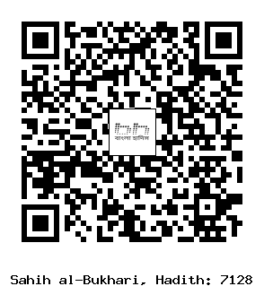 ৭১২৮. ইবনু ’উমার (রাঃ) হতে বর্ণিত। রাসূলুল্লাহ সাল্লাল্লাহু আলাইহি ওয়াসাল্লাম বলেছেন ঃ আমি ঘুমের অবস্থায় দেখতে পেলাম যে, আমি কা’বার তাওয়াফ করছি। হঠাৎ একজন লোককে দেখতে পেলাম ধূসর বর্ণের আলুথালু কেশধারী, তার মাথা থেকে পানি গড়িয়ে পড়ছে কিংবা টপকে পড়ছে। আমি জিজ্ঞেস করলাম, ইনি কে? লোকেরা বলল, ইনি মারিয়ামের পুত্র। এরপর আমি তাকাতে লাগলাম, হঠাৎ দেখতে পেলাম, এক ব্যক্তি স্থুলকায় লাল বর্ণের, কোঁকড়ানো চুল, এক চোখ কানা, চোখটি যেন ফোলা আঙ্গুরের মত। লোকেরা বলল এ-হল দাজ্জাল! তার সঙ্গে বেশি সাদৃশ্যপূর্ণ লোক হল ইবনু কাতান, বানী খুযা’আর এক লোক। [৩৪৪০] (আধুনিক প্রকাশনী- ৬৬২৯, ইসলামিক ফাউন্ডেশন- ৬৬৪৩)