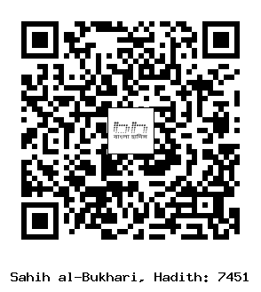 ৭৪৫১. ’আবদুল্লাহ্ (রাঃ) হতে বর্ণিত। তিনি বলেন, এক ইয়াহূদী বিদ্বান রাসূলুল্লাহ্ সাল্লাল্লাহু আলাইহি ওয়াসাল্লাম-এর নিকট এসে বলল, হে মুহাম্মাদ! আল্লাহ্ কিয়ামতের দিন আসমানকে একে আঙ্গুলের ওপর, পৃথিবীকে এক আঙ্গুলের ওপর, পর্বতরাজিকে এক আঙ্গুলের ওপর, বৃক্ষলতা ও নদী-নালাকে এক আঙ্গুলের ওপর এবং অন্য সকল সৃষ্টিকে এক আঙ্গুলের ওপর রেখে দেবেন। এবং নিজ হাতে ইশারা দিয়ে বলবেন, সম্রাট একমাত্র আমিই। এতে রাসূলুল্লাহ্ সাল্লাল্লাহু আলাইহি ওয়াসাল্লাম হাসলেন এবং বললেনঃ তারা আল্লাহর যথাযোগ্য মর্যাদা উপলব্ধি করেনি- (সূরাহ আন’আম ৬/৯১)। [৪৮১১] (আধুনিক প্রকাশনী- ৬৯৩৩, ইসলামিক ফাউন্ডেশন- ৬৯৪৩)